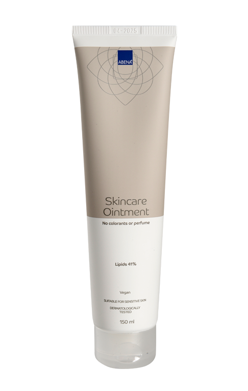 Maść pielęgnacyjna ABENA zawierająca 41% lipidów, dzięki czemu idealnie nadaje się do skóry suchej i podrażnionej oraz wykazuje bardzo dobre właściwości barierowe już od pierwszej aplikacji i utrzymuje się do 8 godzin.