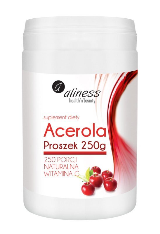 Suplement diety Aliness Acerola Proszek 250g - naturalna witamina C to preparat w postaci proszku do rozpuszczania w wodzie lub dodania do posiłku otrzymywany z wyciągu z owoców aceroli.