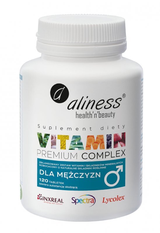 Suplement diety Aliness Premium Vitamin Complex dla mężczyzn to preparat opracowany w oparciu o najwyższej jakości składniki pomagające uzupełnić dzienne zapotrzebowanie organizmu mężczyzny w składniki odżywcze.