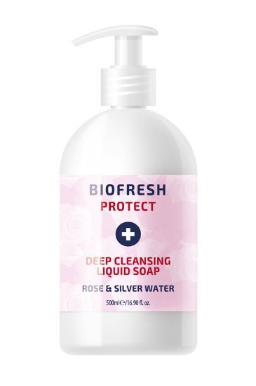 Intensywnie i głęboko oczyszczające mydło w płynie Biofresh Protect, które delikatnie chroni skórę i pozostawia na niej przyjemny różany zapach. Mydło jest odpowiednie do codziennego stosowania i mycia zarówno rąk, jak i ciała.