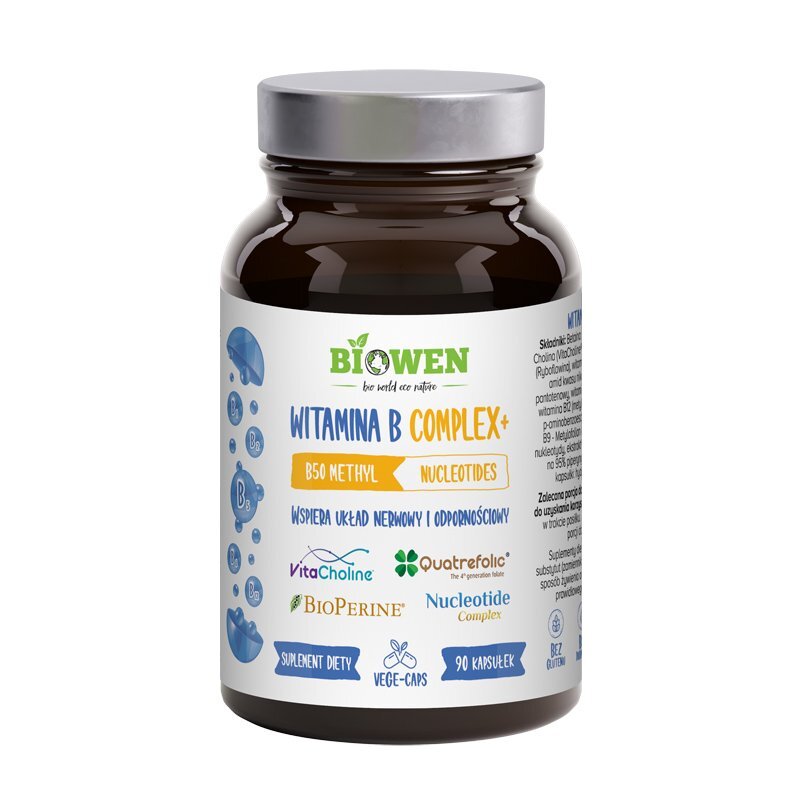 Suplement diety Witamina B Complex+ to preparat o czystym składzie zawierający kompleks witamin z grupy B o wysokiej biodostepności w wysoko przyswajalnych formach, dzięki czemu jest odpowiedni dla osób z zaburzonym wchłanianiem substancji z układu pokarmowego.