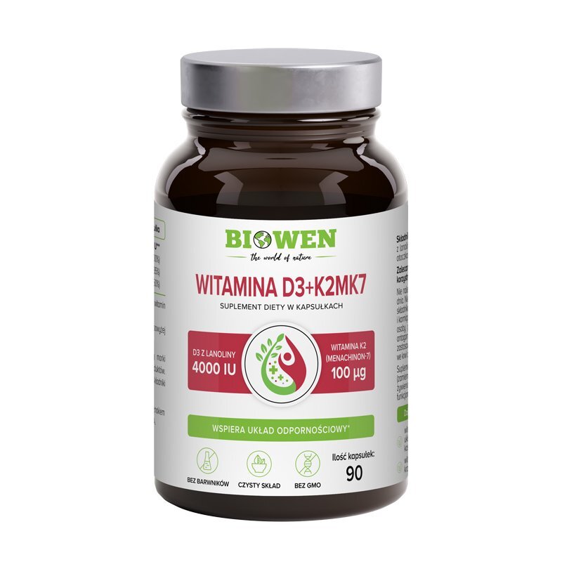 Olej MCT, witamina K2 (menachinon-7) witamina D3 z lanoliny (cholekalcyferol), d-alfa-tokoferol(witamina E), otoczka kapsułki: żelatyna wołowa.