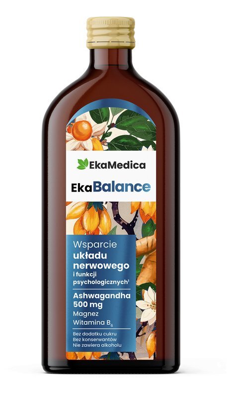Suplement diety w formie pasteryzowanego płynu, łączącego zawartość ekstraktu z korzenia witanii ospałej z witaminą B6 i magnezem, którego recepturą została opracowana w celu wsparcia układu nerwowego.