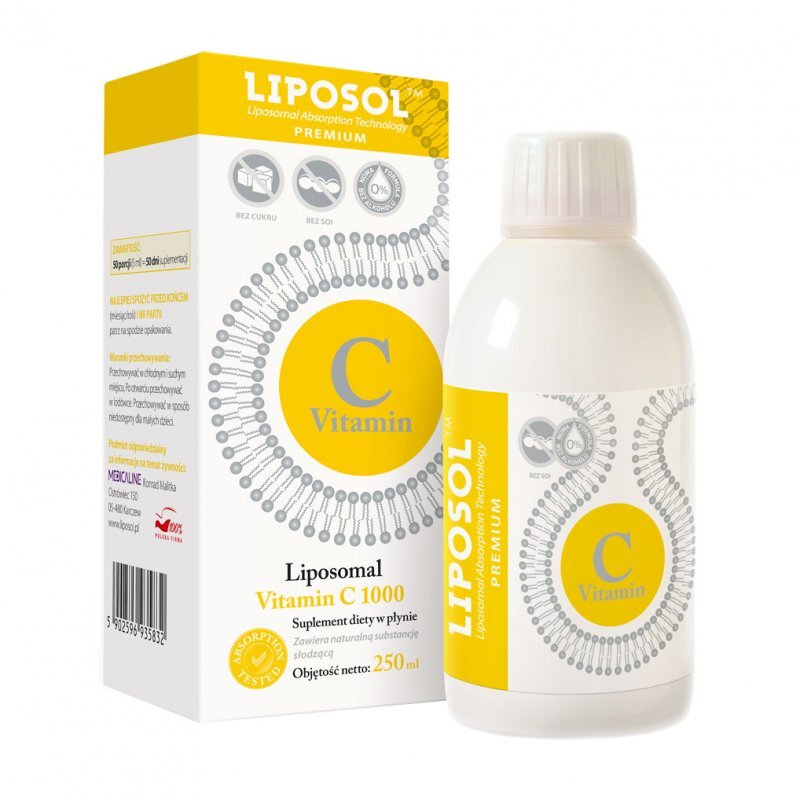 Suplement diety Liposol C 1000™ Liposomalna Witamina C 1000 (Buforowana) to produkt w postaci płynu o naturalnym smaku bez dodatku cukru i bez alkoholu zawierający zamkniętą w liposomach witaminę C.