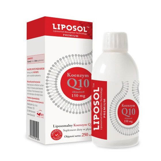 Suplement diety Liposol™ Koenzym Q10 (UbiquinoN) to produkt w postaci płynu bez dodatku cukru, bez alkoholu, bez glutenu i bez GMO zawierający zamknięty w liposomach koenzym Q10.