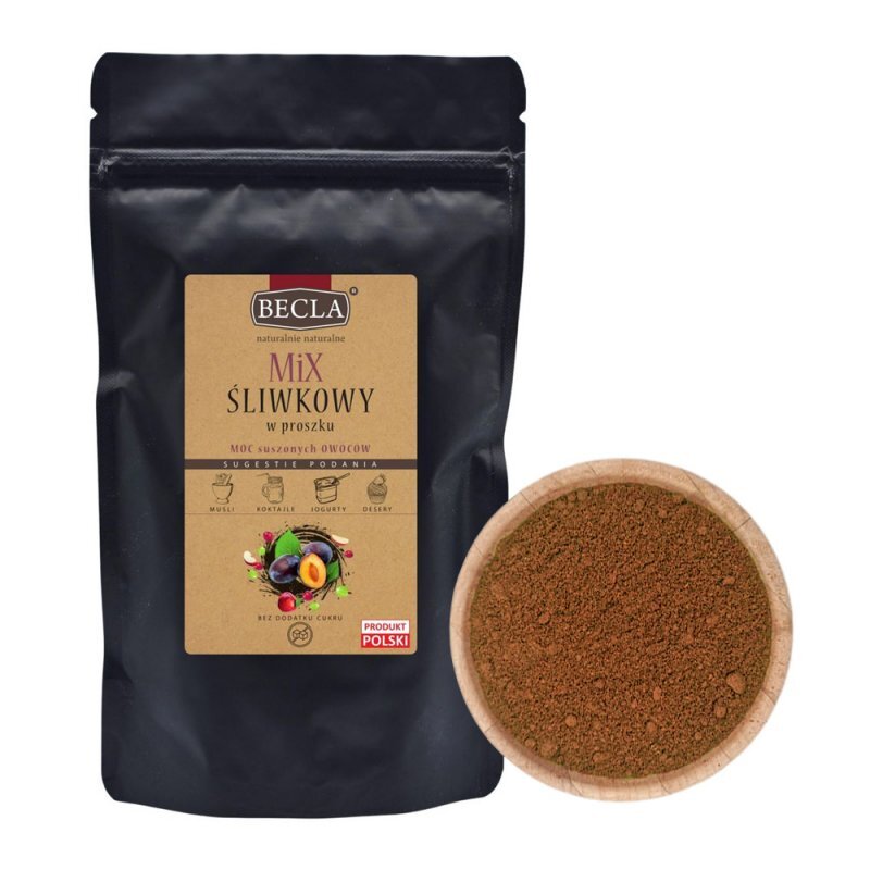 Mix śliwkowy (błonnik) w postaci proszku powstaje poprzez sproszkowanie suszonych owoców śliwki węgierki, jabłka, czereśni i agrestu. Wykorzystane w produkcji owoce suszone są powietrzem w temperaturze 70°C, pozwala to na zachowanie ich właściwości odżywczych.