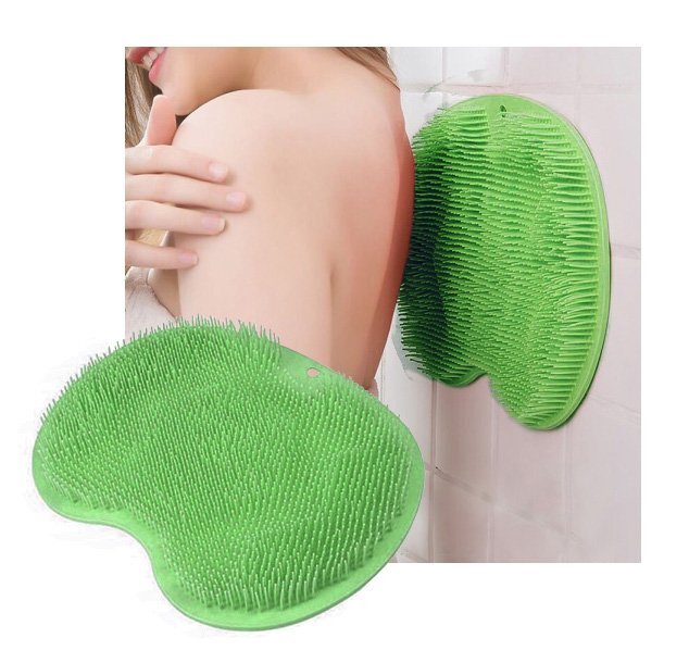 Silikonowa myjka - szczotka do pleców i stóp mocowana na przyssawki np. na ścianie kabiny prysznicowej, także na powierzchniach z płytkami, w wannie lub na dowolnej innej płaskiej powierzchni. Można ją także położyć w misce z wodą i użyć do masażu zmęczonych po całym dniu stóp.
