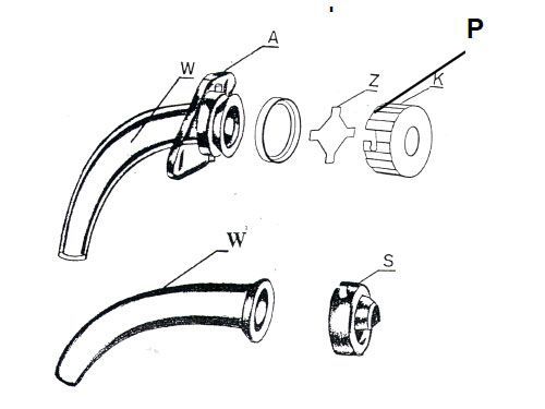 Kompletny zestaw składa się z rurki zewnętrznej, łukowato wygiętej i stożkowo zbieżnej, zamocowanej w sposób trwały na kołnierzu, rurki wewnętrznej z kółkiem ułatwiającym jej swobodne wyciąganie, kapturka zwykłego z płytką wewnątrz przytrzymywaną pierścieniem i kapturka osłonowego. Koniec rurki zewnętrznej jest lekko wyoblony celem uniknięcia podrażnienia ścian tchawicy.