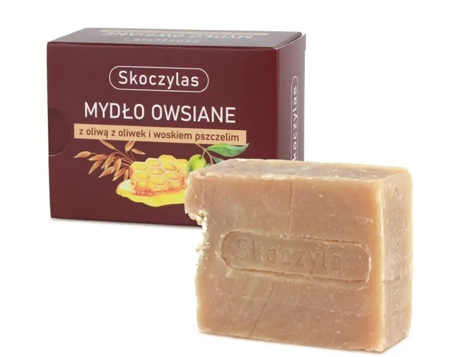 Naturalne mydło owsiane w kostce wytwarzane przy użyciu tradycyjnej metody na zimno wzbogacone dodatkiem oliwy z oliwek i wosku pszczelego..