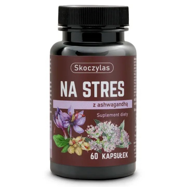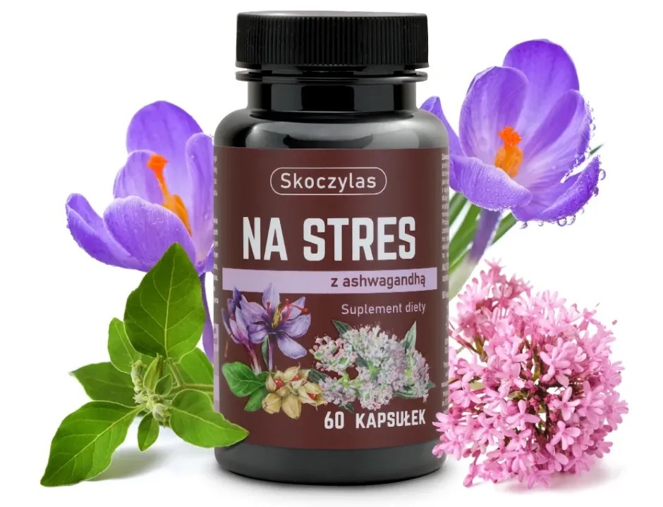 Suplement diety dla osób dorosłych przeznaczony do stosowania w stanach przemęczenia i stresu zawierający ekstrakty z ashwagandhy, kozłka lekarskiego i szafranu.