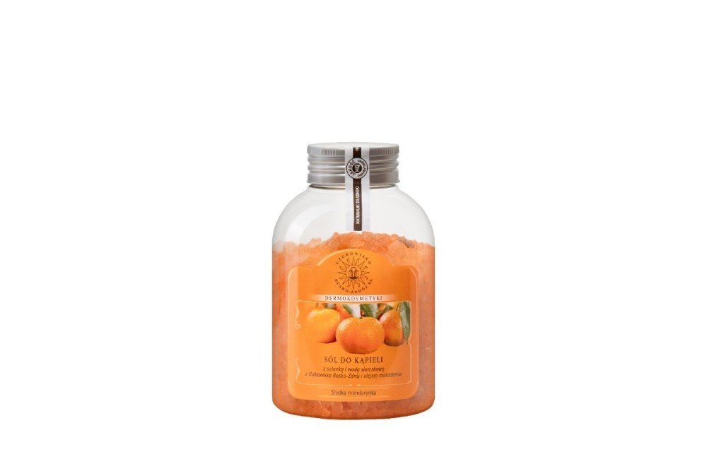 Sól do kąpieli o zapachu słodkiej mandarynki dzięki zawartości oleju makadamia, bogatego w witaminy: A, B, E oraz składniki mineralne, długotrwale nawilża, regeneruje i odświeża. Ciepła kąpiel z dodatkiem soli poprawia samopoczucie i wspomaga naturalną odnowę skóry. Odpręża i relaksuje, uwalnia od stresu i napięcia fizycznego. Umożliwia otwarcie się porów skóry, dzięki czemu ułatwia usunięcie toksyn z organizmu oraz wchłonięcie z wody znajdujących się w niej związków siarki oraz cennych minerałów. Przynosi ukojenie zmęczonej skórze.