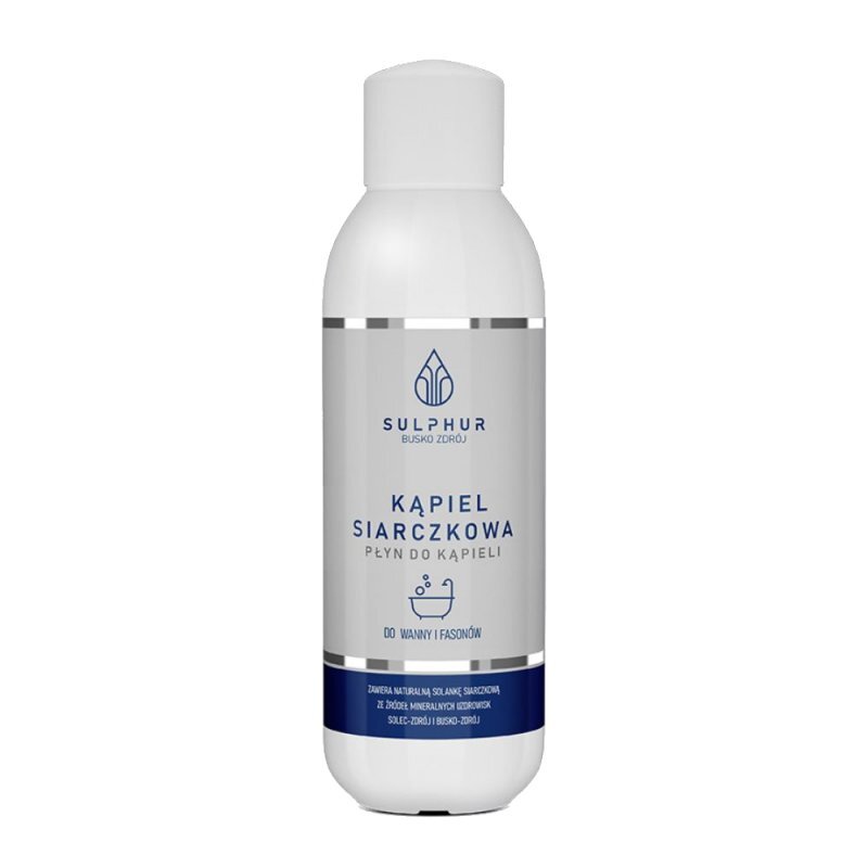 Sulphur Kąpiel siarczkowa - płyn do kąpieli jest produkowana na bazie naturalnych wód siarczkowych dzięki czemu zawiera bardzo cenne mikroelementy. Odpowiednio nawilża oraz regeneruje zniszczoną i suchą skórę za sprawą dokładnie dobranych składników, takich jak olejek z kocanki. Solanka siarczkowa zawarta w preparacie dodatkowo wzmacnia chrząstkę stawową.