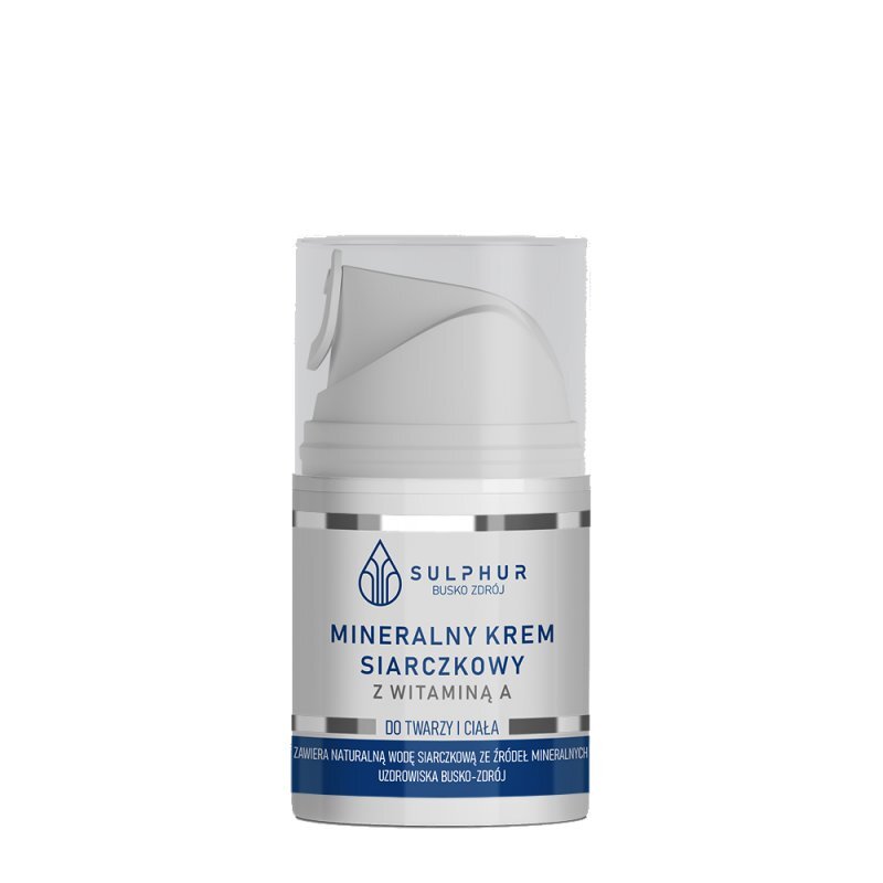 Sulphur Krem Siarczkowy z Witaminą A - jest produkowany na bazie naturalnych wód siarczkowych dzięki czemu zawiera bardzo cenne: jony siarczkowe, wodorosiarczkowe, siarkę koloidalną, jodki, bromki, sole wapnia, magnezu, potasu inne mikroelementy.