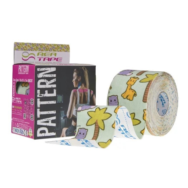 Taśma do tapingu Rea Tape Pattern z kolorowym wzorem w zwierzątka to wysokiej jakości produkt wykonany z przepuszczającej powietrze bawełny bez zawartości lateksu, tkany tak by odwzorowywał ludzką skórę i jej elastyczność, który sprawdzi się u najmłodszych pacjentów i dzieci uprawiających sport.