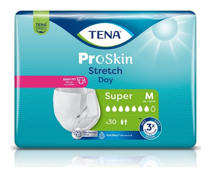 TENA Stretch to jednorazowe elastyczne pieluchomajtki do stosowania przy średnim i ciężkim nietrzymaniu moczu, które są bardziej nowoczesne w porównaniu do klasycznych pieluchomajtek.